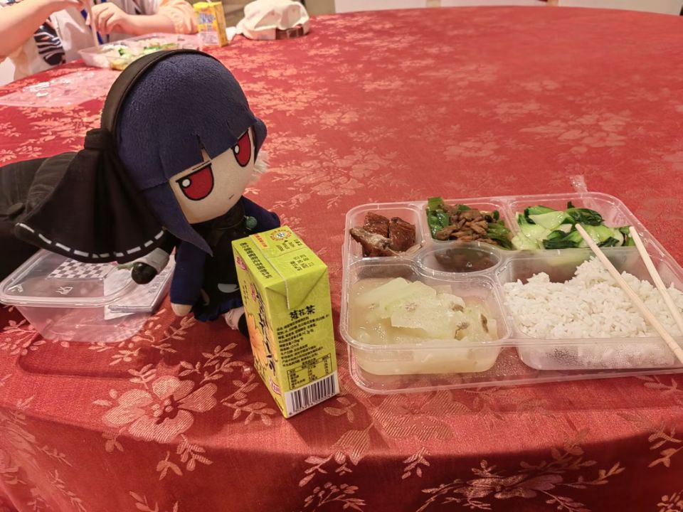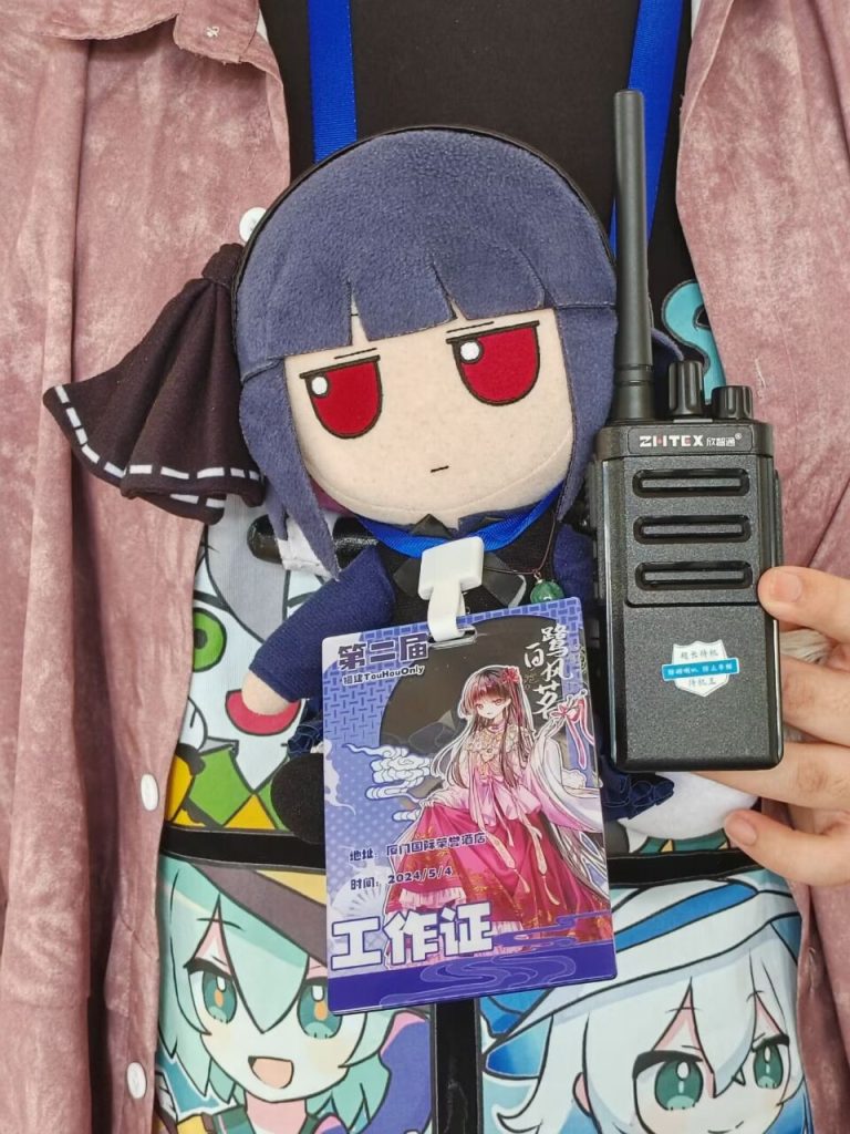 我也把她们分给我各个亲爱而熟悉的摊主朋友摊位上:青灵梦放局口街、犬咲与红魔城蕾米放喵玉、秦心放金盏银台(再一次的求返图,我家fumo都有带项链),尽管先前支援铁路客运站春运的时候,就已经有检票口工作经验,但是到九点之前我还是会有点心慌,一方面是跟我熟悉的工作场景中,少了自动检票闸机的部分,相当于说全程需要人工检票,而且还要准备好给游客的门票所附赠的礼品;而另一方面的话…由于检票系统也是跟我所知的有所区别,当时其实还挺慌检票系统会不会出现一些意料之外的情况…可能这里唯一让我不心乱的就是客流量了,也很庆幸这一次接触的游客脾气都很好,检票口staff相互之间的配合也很默契,所以第一波检票很快的就处理完毕,然后接下来就是熟悉的值守岗位,这种值守的成功让我找回了当时在支援春运的时候的那一种感觉,反而有点很微妙的怀念感。中间有不少亲爱的朋友也特意折来检票口来看望小弟我,中场有出去吃个饭休息下