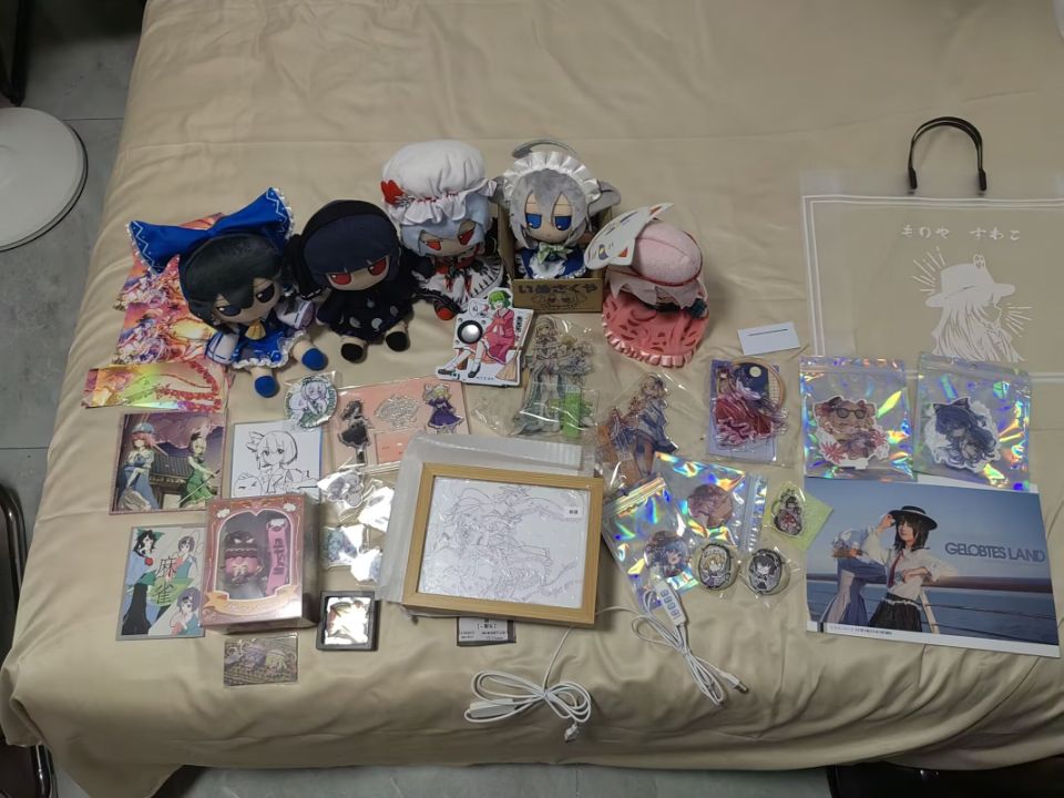 哦,对了,顺带一提,因为中间有一次staff的大合照,在对讲机听到这个消息之后,我把亲爱的、明明是游客身份的同事给拉过来顶我检票口的班,合照结束回去交接的时候,他还检了三张辉夜票。(不愧是跟我的同行同事) 而终于到大概15点半(下午3点半)的时候,我这边工作结束了,然后在不少摊主清摊的时候,我也算是得愿进去去扫货了(雾),随着最后福T2.0落下帷幕,新的一场又一场派对与狂欢也开始了,这边在会在另一篇说说具体详写,总之到了晚上清点下最后的战利品