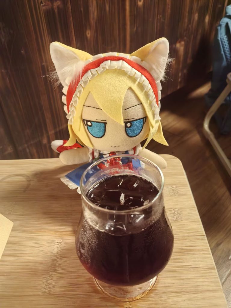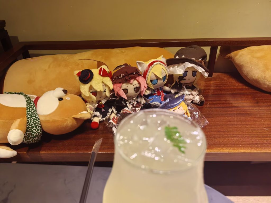趁着那夜小雨,我带着我家的四只fumo(刚好这一轮陪我一起出外勤的,图1)在一番小摸索之后来到店里,老板热情接待并协助我拍摄了些照片;而这边还有一个小插曲,我原本想要点一杯莫吉托,结果恰巧缺材料,所以老板给了我一杯特调。